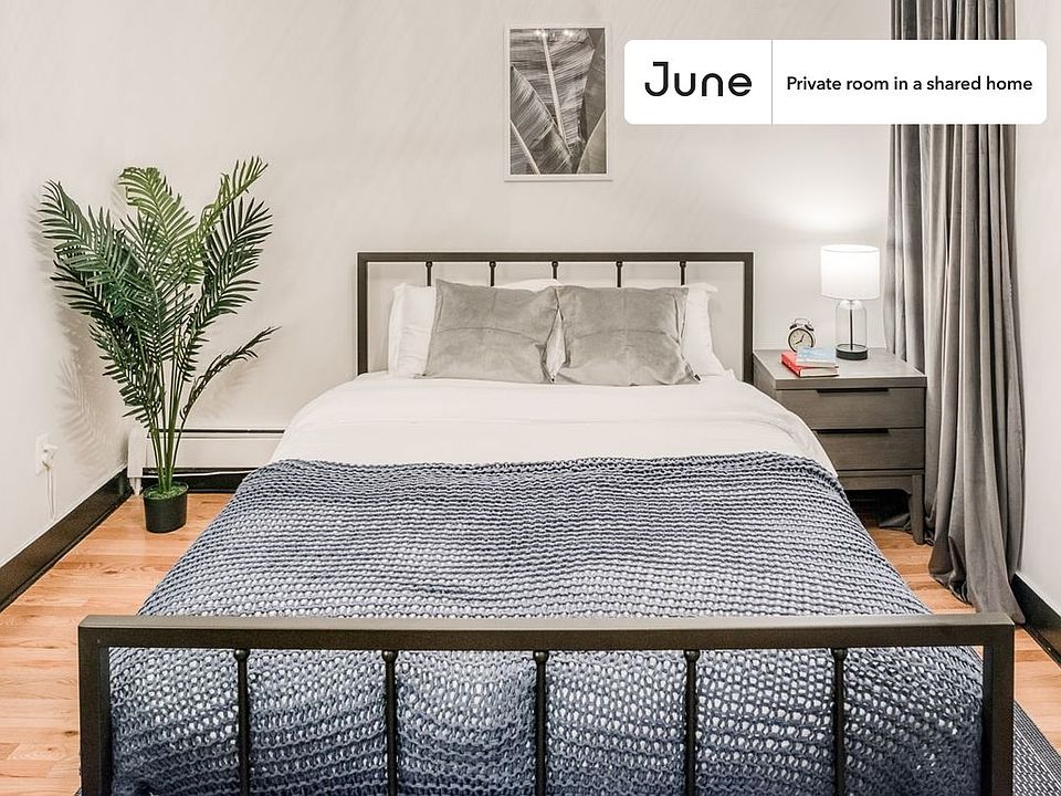 This Queen room in Central Harlem is available on a 12 month lease or a flexible short term (31 to 364 days) lease. You pick your custom start and end date. Monthly rent rate is determined by furnishing preference, move-in date and move-out date. Speak to a June representative for recommendations on the best stay duration for the lowest rate.