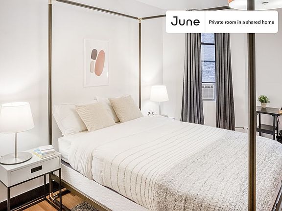 This Queen room in Central Harlem is available on a 12 month lease or a flexible short term (31 to 364 days) lease. You pick your custom start and end date. Monthly rent rate is determined by furnishing preference, move-in date and move-out date. Speak to a June representative for recommendations on the best stay duration for the lowest rate.