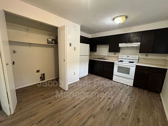 This 2-bedroom apartment offers a prime location near Tautphaus Park and is just a short drive to Downtown Idaho Falls. Situated on the ground floor, this downstairs unit boasts a spacious kitchen complete with a refrigerator, stove, and hookups for a washer and dryer. The bedrooms feature large windows, and the property includes a single-car detached garage. Additionally, the apartment has recently been equipped with air conditioning.