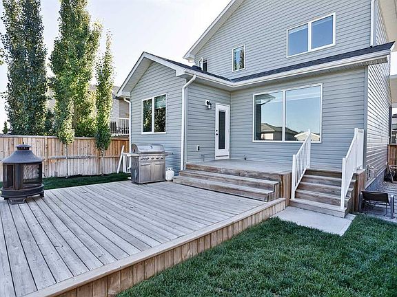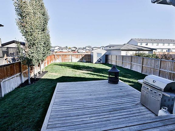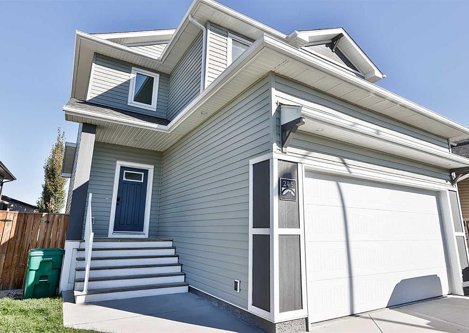 Located at 245 Agnes Short Place, this two-story home, built by Galko Homes in 2018, is nestled in a quiet street adjacent to the Coulees, with convenient access to numerous walking trails. The property boasts a massive yard, 148' deep, with lane access that allows for the potential to build a detached oversized garage at the rear in addition to the existing double attached garage at the front. Fully landscaped and equipped with a shed, underground sprinklers, and a two-tier deck perfect for summer nights, the outdoor space is as inviting as it is versatile. Inside, the expansive living space flows seamlessly into the dining area and modern kitchen, which features white quartz countertops, an undermount stainless steel sink, steel appliances, and ample storage. A half bath near the back entrance adds extra convenience. Ascending to the second floor, there’s black iron railing and air conditioning, you will find three well-appointed bedrooms and two and a half bathrooms. The primary bedroom at the rear of the home features an en suite with in-floor heating and a five-foot shower, enhanced with extra shelving on the side. A second-floor laundry area, situated conveniently close to the bedrooms, adds a practical touch. The basement is partially developed and offers a cozy family room complete with a gas fireplace. Additionally, an extra bedroom and bathroom have had electrical and drywall done. Close to local amenities, making this property both a comfortable family home and a practical choice for everyday living!