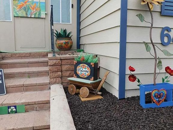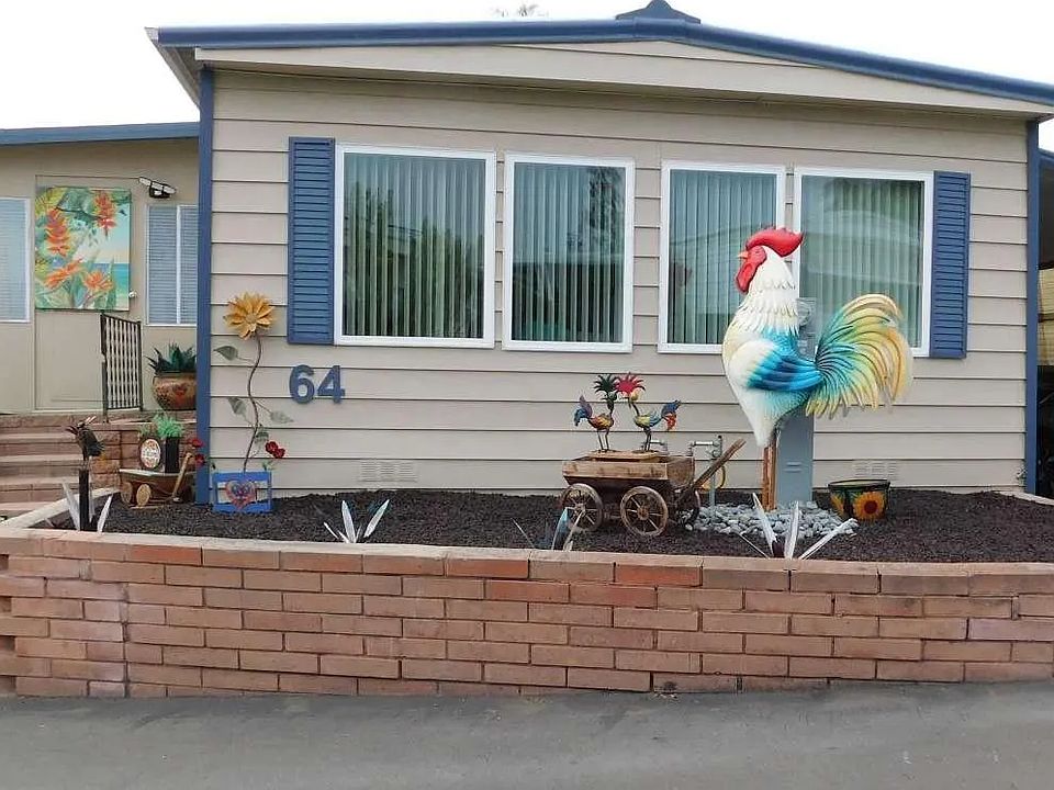 This uniquely designed 55+ 100% LAND OWNED (Not Land share Co-op) welcomes you with its charming creative facade and inviting ambiance. Floorplan is intended for those who like flex rooms, zoom rooms, roommates, multiple offices, future caregivers. Recent new dual pane windows, upgraded central air conditioner, luxury wood look flooring, newly maintained recoated roof, washer/dryer in dedicated laundry room, stainless steel appliances, high end faucets, doorknobs, private patio area perfect for enjoying San Diego's beautiful weather. LOW HOA $245.00 mo. covers trash, water, basic cable. No property tax on home (land only). Enclosed sunroom currently being used for living adding extra square footage for living. Good views from 2 rooms. Most furnishings convey. This property is move-in ready, allowing you to settle in and start enjoying your new lifestyle from day one. Prime location- WALK to shopping and dining. Quiet end of community.