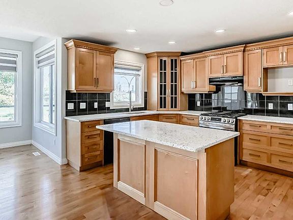Walkout basementOversized pie lotOpen-concept kitchenHardwood flooringLarge islandStone countertopsCorner pantry