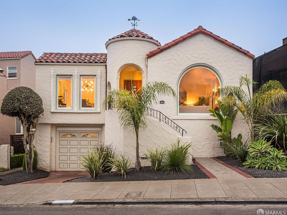 Incredible fully detached Mediterranean style home w/ Ocean views in prime Mt Davidson Manor. The backyard has been completely reimagined & renovated; the yard has been leveled for optimal use, boasting artificial turf & tiled patios. Professionally landscaped w/new drip irrigation system, BBQ & sitting area. The home masterfully blends Mediterranean architectural charm w/ everyday functionality. The living rm is oversized featuring a tiled fireplace, huge picture window & gleaming hardwoods. The dining room is flooded w/ natural light, new chandelier & is perfect for any sized gathering. Off the dining rm is the modern white kitchen, S/S appliances, gas range, double oven & generous counter space. The primary bedrm features exquisite ceiling details w/hand-painted wood beams, dark wood encased windows & ocean views. Brand new carpet takes you downstairs to the bonus room; could be a second family rm, playroom or office. Functional laundry rm is off the massive garage, w/ interior parking for at least 3 cars plus ample storage. Close to 2 Whole Foods, W Portal Av shops, restaurants, transit, parks & more. Easy commuter house, 19th to 280 in minutes. Beau landscaped front w/palm trees & mini stone-truly a remarkable offering in one of San Francisco's most desirable neighborhoods