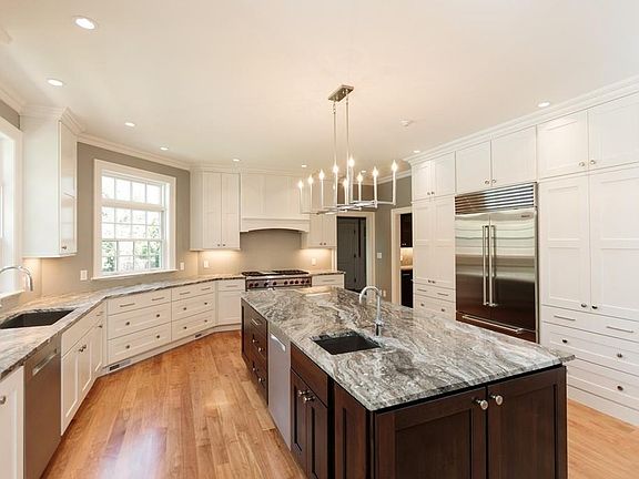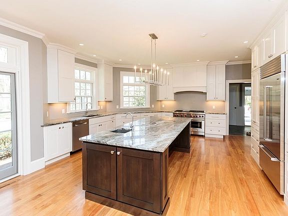 Exquisitely renovated with sophisticated finishes, this six bedroom distinctive Colonial will impress you. The newly installed chef's kitchen is brimming with style and functionality. Those who love to cook will be inspired to entertain in the open floor plan. The palatial entry with custom millwork and the formal dining room with elegant herringbone wood floors will impress your guests. A sun-lit breakfast area flows into the re-styled family room which is highlighted by a stone fireplace. Upstairs, five spacious bedrooms and four updated bathrooms are thoughtfully designed. The extravagant master bedroom suite contains two walk-in closets, a private sitting room and a luxuriously appointed bathroom. The third floor includes an impressive loft-like sixth bedroom with en-suite bathroom. The finished lower level features a gym, full bathroom and entertainment room. A sport court and a three car garage complete this exceptional home.