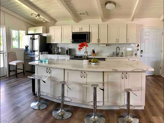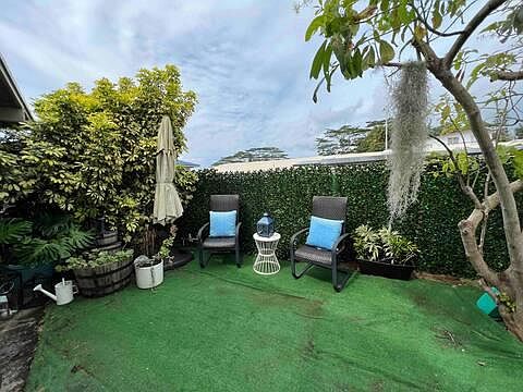 Aloha and welcome to your new home! Located in cool and quiet Palisades, it is the perfect base for getting to most places around the island. 10 minutes from Pearl City freeway exit/entrance (exit 10) and plenty of restaurants and shopping close by. Fully furnished and updated with 2 carpeted bedrooms. One with a king size bed and the second bedroom with 2 twin size beds. Unit is one half of a duplex with private laundry and yard. Utilities are a separate flat fee and includes water/sewer/electric/trash and internet. One parking spot in driveway and additional off-street parking available as well. Small yard with fire pit and Weber gas grill, swing set all included. Available for showing beginning November 26th. 1 year minimum lease @$3000mo plus utilities. Month to month possible at higher amount.