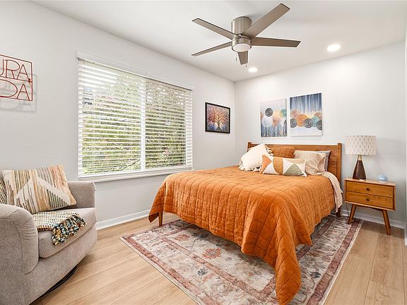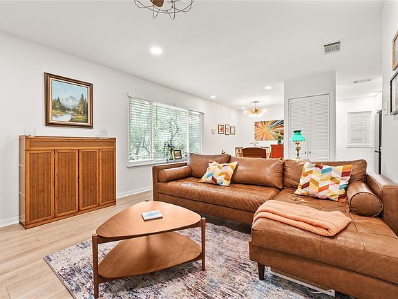 Modern & Stylish North Austin Condo All Utilities Included and no shared walls. Beautifully updated condo boasts new windows & wooden blinds, recessed lighting, and a stacked washer & dryer. The bright, open living area flows seamlessly into the spacious dining room, highlighted by a mid-century modern sputnik accent chandelier. The kitchen connects to the dining space with attractive open shelving above a deep single basin sink, creating both function and style. Both bedrooms are generously sized to fit a bed, nightstands, and additional furnishings, each with its own closet. The bathroom makes a statement with designer teal herringbone tile and striking gold fixtures. Step outside to enjoy a private community green space or take a dip in the sparkling pool just steps from your door. All utilities are included even Spectrum 600 Mbps high-speed internet so you can move right in without extra monthly hassles. Neighborhood perks: Walk to Alamo Drafthouse Cinema, Epoch Coffee, Hopdoddy, Bartlett's, and more. Pet owners will appreciate the small fenced dog play area at the Subaru dealership next door. This condo is the perfect blend of modern upgrades, stylish design, and all-inclusive convenience in a vibrant, walkable neighborhood.
