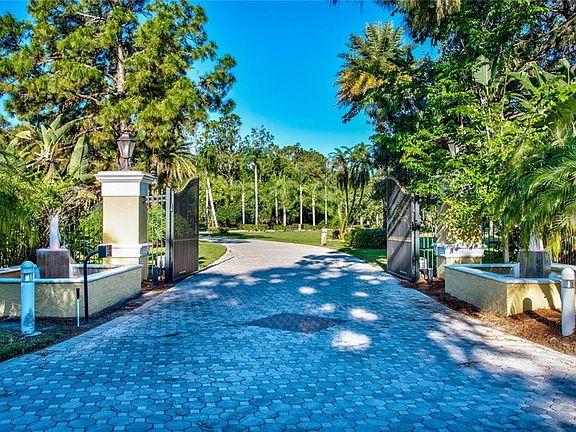Pinellas County Paradise! This luxurious fenced estate is situated on 17 beautiful acres of Lake Tarpon located in Tampa Bay. It is comprised of two dream homes and an entertainment pavilion in a serene park-like setting for your enjoyment. Between the two homes there are nine bedrooms, 14 bathrooms, two exercise rooms, two offices, a media room, hidden concrete panic room, 4 fireplaces, a swimming pool and more than 10,000 SF of outdoor deck living. Professional outdoor lighting highlights the live oak lined driveway and lights the way throughout the entire property. The grand entryways draw you into spacious floor plans designed for entertaining. Spanning over 26,000 SF of living space, these magnificent waterfront residences feature soaring ceilings and wall-to-wall windows. The houses open to the outdoors yet are designed to bring the outdoors in, striking a gracious balance of elegance and nature. The property's paved nature trail offers the perfect opportunity for gazing at the Lake Tarpon lagoon and canal which teems with wildlife on this private peninsula. There are 575 FT of waterfront not including the canal. A total of five docks and a concrete boat ramp are present for your personal watercraft. A 2016 Bennington Tritoon is included with the purchase along with the furnishings in the house. You are ensured privacy with four security gates as well as the propertys tangential proximity to a 40 acre wildlife preserve. By appointment only.