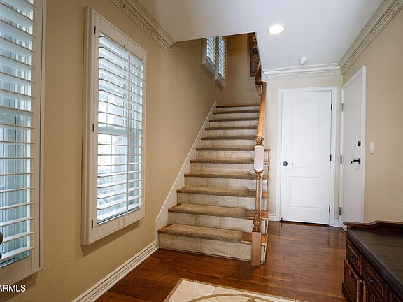 ****Beautiful condo in the upscale Biltmore Jewel with total custom finishes including iron & glass front door, wide plank wood flooring, travertine, gorgeous upgraded cabinetry, slab granite, plantation shutters, Waynes coating, tray ceilings and tall doors. Central vac system, pre-wired for surround sound, energy efficient windows, and epoxy garage floor coating. Asko dishwasher and Google doorbell, camera door, lock and thermostat. Tuscan exterior architecture with lush community pool &spa; all located in the Biltmore Corridor with the finest shops, dining, and access to downtown
