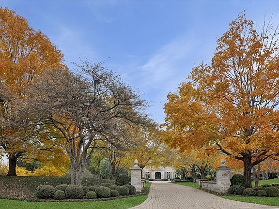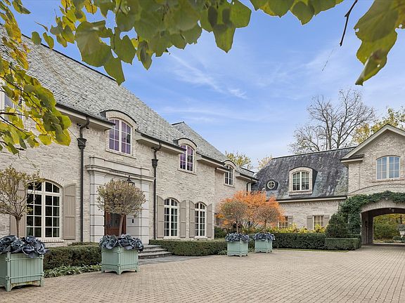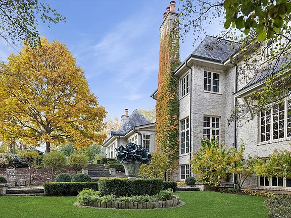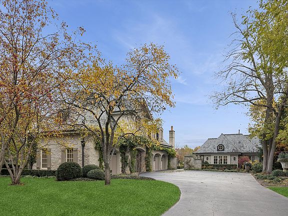 This lovely French Normandy-inspired stone custom home, was built in 2007 by Havlicek Builders. This very special property is just 35 miles west of Chicago, over 9,500 square feet (plus 1,118 square feet in the pool house), and is perfectly positioned on 3.64 acres, with the option of another 4 acres. The appreciation of timelessness, patina and permanence are on full display with the Vermont slate roof (just serviced), copper lanterns (front 2, gas) and gutters, timbers, Indiana limestone and bluestone. Two levels of the home, plus the pool house, were designed by Mark D Sikes, L.A.-based designer (2023) and is featured in his 3rd book. The upper level houses all 5 bedrooms, all ensuite, and a spacious laundry room. The primary suite is serene, grand, and, with its 12-foot ceiling and barn beams, custom marble fireplace, and seating area, it's a respite like no other. It's in this space, in particular, where you peer out the expansive windows in the evening and appreciate the exterior illumination on the trees just outside, and feel as though you're resting in the middle of a park. The primary bath offers Carrara marble flooring (heated), countertop and shower. The standalone tub offers a bubbly surprise, but the real winner here just might be the dual, large walk-in closets off the primary suite hall. There are 4 additional bedrooms on this level and each are ensuite. Entertaining is effortless here. The large kitchen welcomes you with an expansive 12x5 island and boasts gorgeous Calacutta countertops, Wolf 60" dual ovens, 6 gas burners/griddle, custom hood, & Wolf warming drawer. The butler's pantry, walk-in pantry and breakfast room all flow seamlessly to the great room (with 12 foot ceiling, hand-chosen barn beams, and stone fireplace), dining and living. The walk down to the walkout basement is an absolute surprise. With walkout access through two gorgeous french doors, this light and bright basement is perfect to host a gathering or movie night. Heated limestone floors. Soapstone countertops. The 12-seat theater is appointed with Ralph Lauren lighting and upholstered navy windowpane walls. The lower family room has a custom limestone fireplace, the gym is fully equipped with rubber flooring, half bath, kitchenette and billiard room. Back upstairs, the library is all paneled with a fireplace. Just outside is a half bath, stately dining room, and living room with custom limestone fireplace. A crowd favorite in this home is the screen porch with cathedral ceiling with barn beams, all stone walls, and heated bluestone floors. Pop in the panes for the colder months and use the warm and welcoming fireplace. This is the perfect spot to enjoy football on the weekends. Speaking of tv viewing, there are 13 tvs, plus the theater projector. There are 4 garage spaces. 3 spaces have heated floors and the single car garage has a new heater (2025) with stairs to the golf simulator and additional storage. Heating and cooling via 4 meticulously-maintained geothermal units. The gardens were designed by renowned Lake Forest landscape architect, Craig Bergmann, and each outdoor room tempts to what's next. The pool house has limestone flooring, high ceilings with beams, a living and dining space, plus kitchenette, lockers, washer/dryer and full bath. Stroll from the pool house directly onto the bluestone porch and pool surround. The pool is 10-feet in depth with diving board. The heated pool is gunite, with an electric cover (2024). Walk down the bluestone steps to the lower courtyard for a bit of serenity. The back patio, off the screen porch, leads to grass steps edged with bluestone, that blends seamlessly into the back 2 acres. Irrigation on entirety, & invisible fence. This home is steeped in casual elegance and timeless beauty. Just steps away from St Charles Country Club, w/championship 18-hole golf course, tennis and pickleball, and dining. If you can feel yourself here, let me be the first to say . . . Welcome home