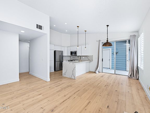Welcome to this stylishly updated 2-bedroom, 1-bath condo in the heart of Thousand Oaks! Just minutes from top restaurants, shops, parks, award-winning schools, and the Civic Arts Plaza, this home offers unbeatable convenience. Inside, you'll find vaulted ceilings, abundant natural light, and a spacious open floor plan. Recent upgrades include hardwood flooring in the main living area, fresh paint, hardwood shutters, and newer stainless steel appliances. Wood fireplace and two sliding doors to access a private balcony. Both bedrooms are generously sized, with mirrored closet doors and plenty of storage. Additional highlights include an updated bathroom, in-unit washer and dryer, and a newer HVAC system. Enjoy comfort, style, and convenience all in one—discover the charm of living on Pleasant Way!