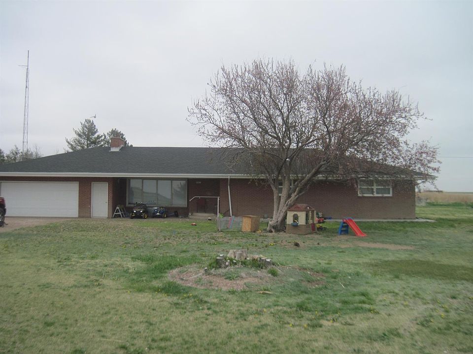 Take a look at this brick ranch home located 10 miles from Goodland on good county road. Main floor offers 3 bedrooms, 1 bath, formal living room with fireplace, open family room and kitchen with oak kitchen cabinets. Full basement that you can finish as you like. Fireplace and plumed for bathroom. Basement has access from outside by double garage. A shop building 40 x 72, storage building and good windbreak. Property sits on 9.5 acres.