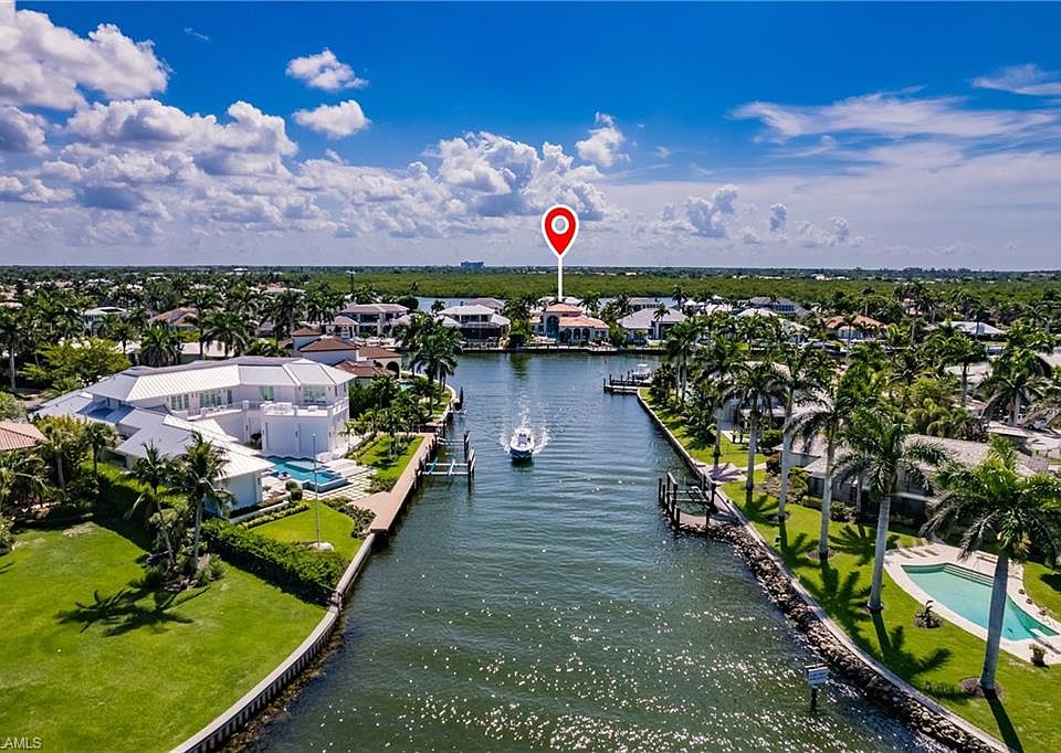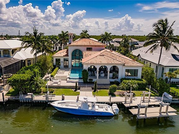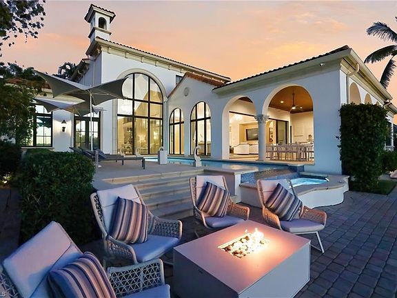 An idyllic, boaters dream in SWFL! This beautiful home offers the incredible view of Naples Bay with the privacy & protection of not being directly on the gulf. Not a boater? Entertaining is a breeze in this 4 bedroom + den home! Each bedroom has their own ensuite bathroom & with the show stopping sunsets your guests will be counting down the days until you invite them back. This furnished listing is beautifully decorated & furnished by award winning designers at Clive Daniel. The spacious outdoor area flows into the invisible edge pool & spa to create the perfect spot in paradise to soak it all in. This property also offers a 20,000 lb boat lift, jet ski lift, a seawall completed in 2020, & more than 100 feet of deep gulf frontage. Come soak in what this slice of paradise offers in person!