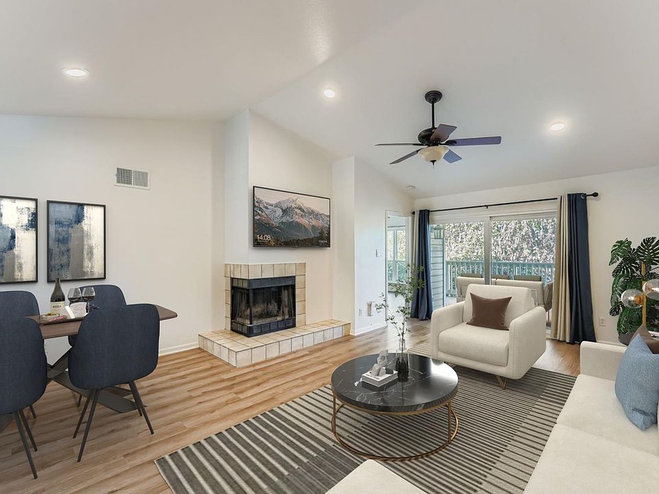 Gated communityCozy fireplaceCovered balconyBeautifully refreshed bathroomStainless-steel appliancesAbundant natural lightQuartz countertops