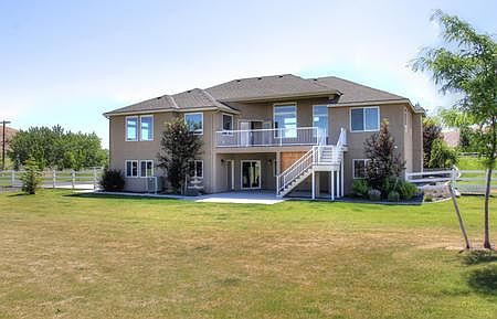 Lovely rambler w/bsmnt boasts 5 car garage space, 2 acres, mtn views & only minutes from town. Main level has large master suite (double walk-ins), den, private guest bedroom, spacious custom kitchen open to great room, dining & windows full of a country view. Large secondary bedrooms with jack/jill bath, family room, full bath, 2nd laundry, storage & patio access are located downstairs. Modern flooring, tile & custom finishes/fixtures. Fully irrigated & fenced. Seller offers $1500 towards rid