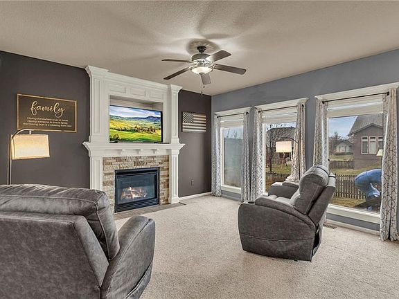 - Features: Carpet, Ceiling Fan(s), Fireplace