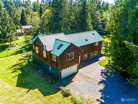 Secluded 5-Acre Dual Residence in Graham | Discover tranquility on this 5-acre property in Graham's best location | Off a dead-end road and secured by a gate | The main home at 2,584 sq ft, offers spacious living, modern amenities, and stunning views of the wildlife | Huge 5 car attached shop/garage with pull-though doors | Both Homes have newer heat-pumps and recently installed roofing | The second home, 1,476 sq ft, is perfect for guests or as rental, featuring a cozy, layout with a cabin like feel | Enjoy open spaces, fruit trees, and the unique charm of elk visiting your pasture. Experience rural serenity and privacy, while still being close to local conveniences. Ideal for those seeking a peaceful, nature-filled retreat.