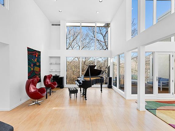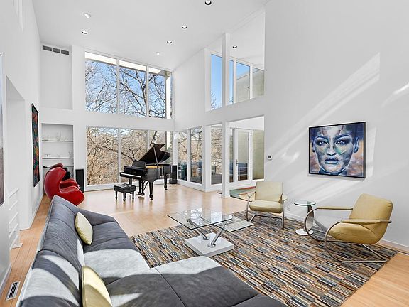 Beautifully designed by John Cuningham, this home offers an open flowing floorplan with soaring ceilings and walls of windows showcasing endless nature views. Gorgeous updated gourmet kitchen with high-end appliances, wine/coffee bar area, built-in informal dining area and pantry! The upper-level offers a primary suite with two walk-in closets, junior suite with deck access, and spacious loft/office. The lower-level features a family room, kitchenette, and game + billiards area. Enjoy the perfect blend of indoor and outdoor living with screened-in porch off the family room, Trex deck off the main entry, and additional decks on the upper and lower levels! Heated 3-car garage. Private setting on 1+ acre at the end of the tranquil cul-de-sac. Fabulous location! Close to shops, restaurants and all the amenities the Ridgedale area has to offer!