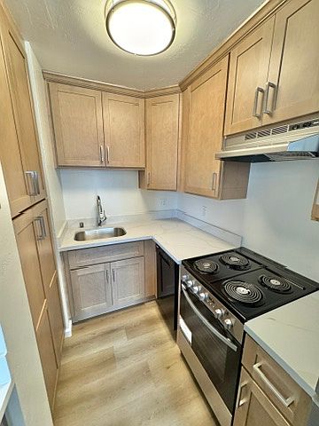 Open kitchenHigh ceilingStainless steel appliancesRemodeled bathroomVinyl wooden flooringLots of closet spaceKitchen counter