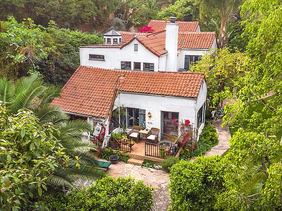 Mini celebrity compound with guest house has more character than any 1920s Spanish gem. This private retreat is fully gated and sits on a corner double flat lot fully surrounded by a forest of lush greenery. Meditate to the sound of the freshwater stream that runs through the yard. The main house features 3 bedrooms and 2 bathrooms and an incredibly charming dining room and kitchen with plenty of windows that pour in the natural light. The master bedroom encompasses the entire top floor featuring a private terrace that overlooks the front yard, a space perfect for a home office, and a large walk-in closet. A truly one-of-a-kind master bath features beautiful tilework throughout, a breathtaking skylight, and a large soaking tub with shower. Attached to the master is a fully working kitchenette with sink, stove, and minifridge. A completely separate guest quarters with a private entrance features a bath with plenty of potential to create any space you can imagine. The massive yard is ideal for relaxing in the hammock underneath the trees, or a place to add a pool creating the perfect atmosphere to host any event. Dont worry about parking with a 2-car garage and large driveway that can fit up to 6 cars. Trust me, you will fall in love with this house as soon as you enter!