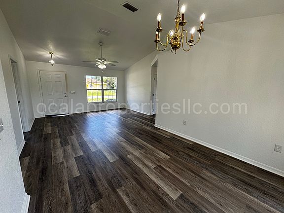 Welcome home to this freshly updated 3-bedroom, 2-bathroom home located in the rapidly growing community of Marion Oaks. Built in 2005 and offering 1,174 sq ft of living space, this home features a split floor plan with a living room, dining area, kitchen, and a spacious 2-car garage. The home has been fully refreshed with brand-new luxury vinyl plank (LVP) flooring, fresh interior paint, and all-new appliances making it move-in ready and easy to maintain. Located just minutes from I-75 and major roadways, you'll enjoy convenient access to shopping, dining, and schools. Home Features Living Area: 1,174 sq ft Bedrooms: 3 Bathrooms: 2 Garage: 2-car attached Year Built: 2005 Flooring: Brand-new LVP throughout Appliances: All-new range oven refrigerator and more Cooling/Heating: Central HVAC Exterior Construction: Concrete block Utilities:SECO Pets: Dogs and cats allowed (see pet policy below) Pet Policy Up to two dogs (max 50 lbs each) and two cats will be considered. Pet fee $300 per pet, non refundable, due at lease signing. Certain dog breeds are restricted. Nearby Schools Sunrise Elementary School: 1.8 miles Horizon Academy at Marion Oaks: 1.5 miles Dunnellon High School: 15.8 miles Rental Requirements Month to Month Lease Credit and background check Proof of income: Household income must equal 2.5x monthly rent First month's rent + security deposit due at lease signing (Security Deposit is equal to 1.5x monthly rent) Application & Screening Process: A $35 Zillow screening fee is required before touring the home. This includes a reusable credit, background, and eviction check through Zillow, valid for 30 days. If you choose to move forward with leasing this property, a final application will be required through Ocala Properties to verify income and complete local background checks. The fee is $30 for the first adult applicant (includes a $5 processing fee), and $25 for each additional adult applicant or co-signer in the same household. We offer month-to-month leases to keep things simple and adaptable for our tenants during changing times. All of our homes are NON-SMOKING.