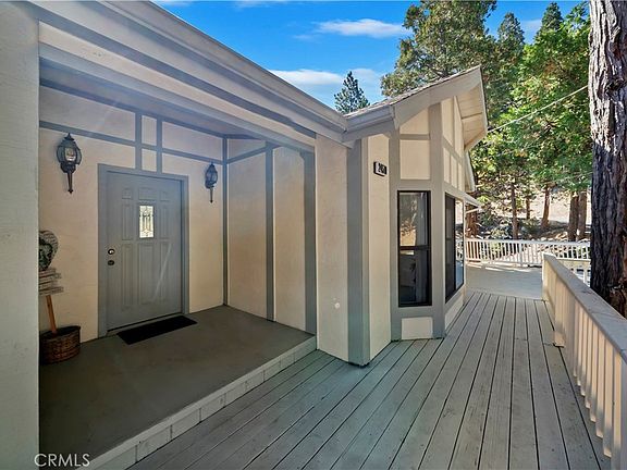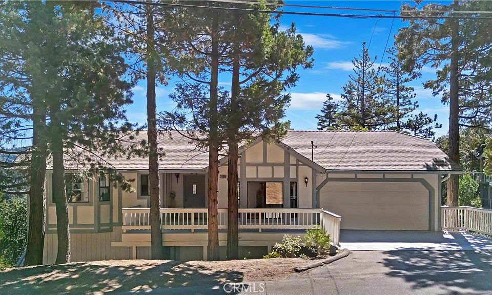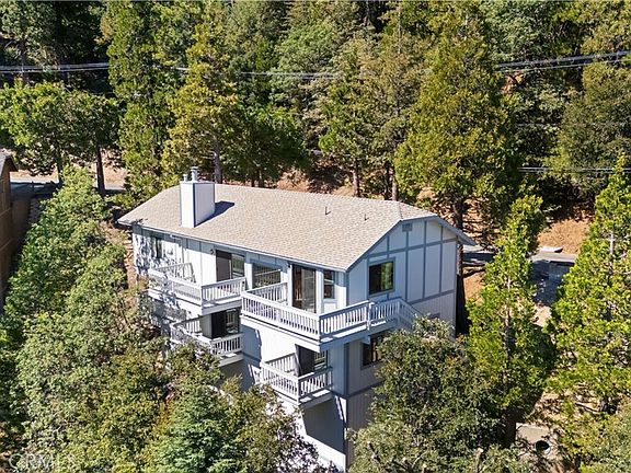 Invite family and friends over for dinner in your formal dining room with a walk-on deck perfect for a BBQ, taking in the sunrise early in the morning with a cup of coffee, or maybe star gazing in the evening. Great kitchen with ample counterspace and cabinetry, new dishwasher, 5 burner gas cooktop, trash compactor, convection microwave, oven, refrigerator/freezer, breakfast bar including the bar stools. Powder room as well. The second level features a primary suite with living area with walk-on deck perfect for relaxing, amazing fireplace with raised hearth and mantle, bedroom area has two closets, adjoining primary bath features dual vanity, step up separate soaking tub with massaging jets, separate walk in shower, walk-on deck off bath, walk in closet, and your own private sauna. 1st secondary bedroom has window with view and two closets, 2nd secondary bedroom has it's own walk-on balcony with view, Plus a inside laundry room that includes the washer and dryer, 3rd level is a spacious bonus room that was basement area. It comes with pool table and light, a table with chairs for playing cards, games or eating area. The flooring at the table area is tiled. Remaining room is carpeting, large area for kids to play, storage area under the stairway perfect for toys, games, etc. Plenty of room for family and friends over for the weekend, holidays, etc. There is a two car garage with automatic opener and the driveway can hold two additional cars. Close to Lake Gregory with water park, swim beach, Lake trail, Skate park, boating, kayaking, paddle boarding and dog park. Property is perfect for short-term rental or year round living. Celebrate the Christmas holidays this year in your mountain home. Don't miss this great opportunity to call this your new home.