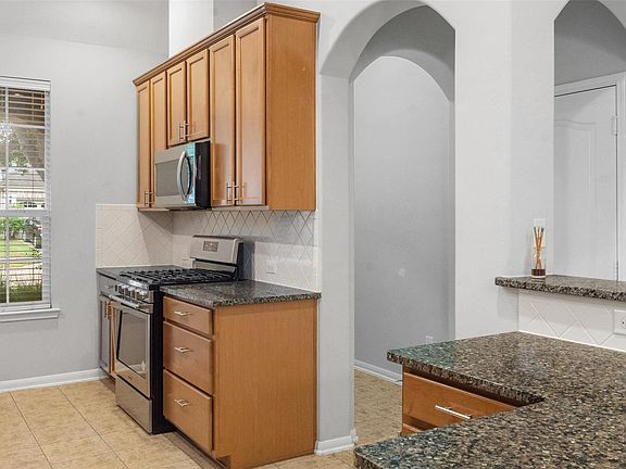Welcome home to this charming one story nestled under shady trees in the heart of Cinco Ranch Southwest. This three bedroom, two bath home features an open layout with fresh flooring, abundant natural light, and a versatile flex space between the secondary bedrooms that is perfect for a home office, playroom, or reading nook. The kitchen offers rich cabinetry, granite counters, a gas range, and stainless steel appliances, and flows into the dining and living spaces. The private primary suite includes two walk-in closets, dual vanities, a soaking tub, and a separate shower. Thoughtful updates include a new AC and heater in 2023 plus a roof, water heater, and dishwasher all within the past 10 years. Outside, enjoy a covered front porch, a peaceful covered back patio, and a fully fenced yard with mature trees. Zoned to top rated Katy ISD schools including Seven Lakes, with nearby parks, playgrounds, and walking trails plus easy access to major commuter routes.