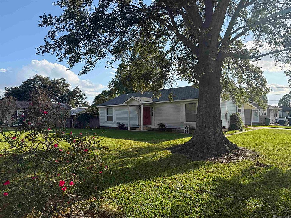 3Br/2Bath home on a large corner lot with covered parking /patio area, detached storage shed, shade tree and a large satsuma tree. Original hardwood floors, large living room and sunken dining, kitchen with breakfast bar, and ample closet space.