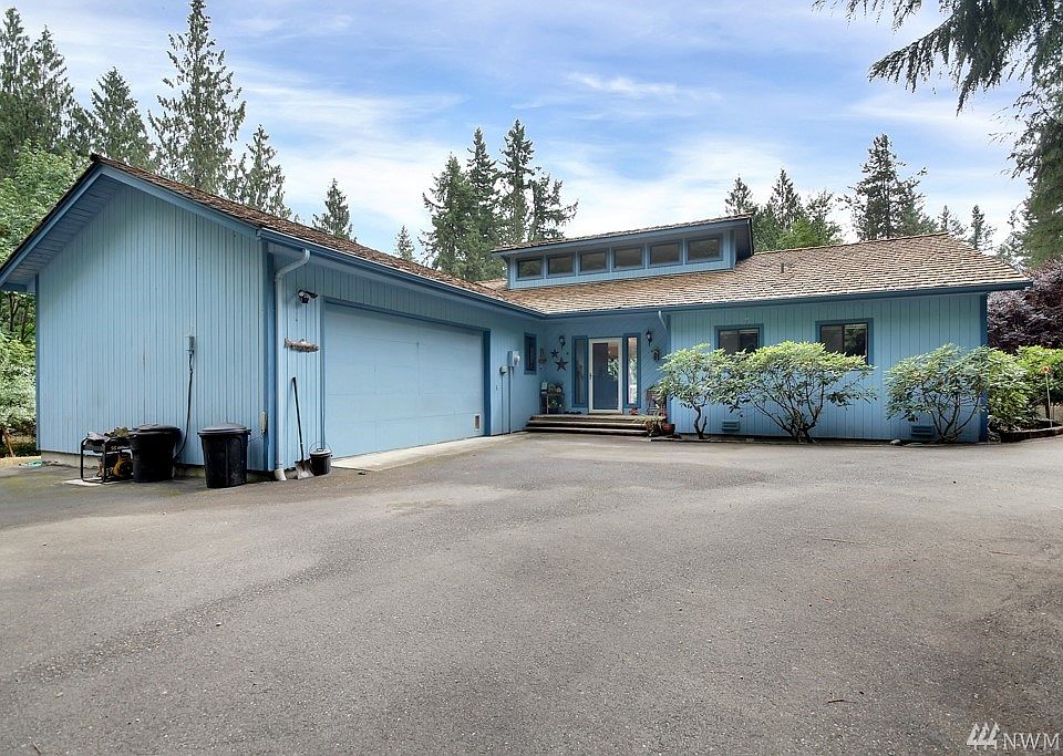WELCOME HOME to this well maintained, custom 3 bedroom, 2 bath rambler on over an acre in Enumclaw! Soaring vaulted ceilings in the great room with floor to sealing stone fireplace with wood stove & blower. New hardwoods. Interior freshly painted. Spacious kitchen with granite counters & newer appliances all stay. Master suite with attached bath. Huge laundry with storage. Entertainment sized deck overlooks nicely landscaped yard with garden areas. 2 car garage, heat pump, wired for generator.