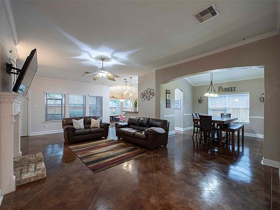 Sleek staron countertopsHigh ceilingsSpacious front porchQuiet cul-de-sac streetCrown moldingOpen concept common areaScreened in back patio