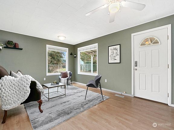 Great opportunity to own this "Move-In Ready" Home with well-appointed floor plan that utilizes space effectively to maximize your square footage. Large west facing picture windows flood the living room with natural light. Out the backdoor past the large kitchen, enjoy summers relaxing on your deck with mountain views or cozy up by the firepit. The large fully fenced lot provides plenty of space for a garden and chickens if you choose. Oversized detached 2-car garage complete with work bench and wired for 220v. Ample parking with room for your RV. Recreational trail & public transportation nearby. This one won't last long!