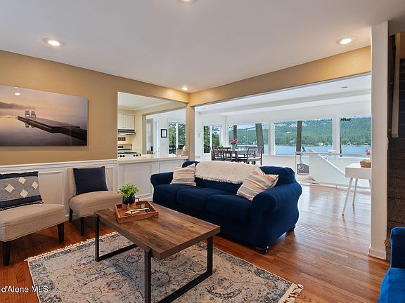 Dreamy waterfront retreat on Liberty Lake! This spacious 4 bed, 4 bath home offers the perfect blend of relaxation and recreation. Enjoy swimming, boating, fishing, kayaking, paddle boarding, wakesurfing, waterskiing (competition ski course right off the property), and soaking up the sun on your private sandy beach. A sturdy deep-water dock provides boat mooring, while multiple decks and patios with ample furniture make entertaining easy. The home boasts incredible views in two living rooms, a tastefully appointed kitchen, a BBQ,propane fire pit, 4 smart TVs, and room to sleep 11 comfortably. Plenty of storage for water toys, plus paddleboards and kayaks included. The under-carport workshop and concrete storage are ideal for extra gear. Upgrades include a new stylish black metal roof,stunning exterior stain, remodeled basement and bathrooms, new water heater, windows, and upgraded lighting. Excellent STR history w/ glowing reviews (4.97/5 Airbnb, 10/10 VRBO). Furnishings negotiable.