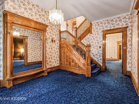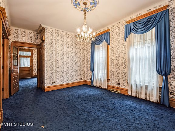 Welcome to this grand lady of Blue Island. This home is on the registry of historical homes in Blue Island and she has so much to offer from the leaded glass on the front window and pass through door in the dining room to the intricate hardware on some doors. You will be greeted in the massive foyer by the stunning mirror surrounded by original custom millwork that follows up the beautiful staircase. Starting in the eat in kitchen there is ample counter space with the galley cooking area. Entertaining will not be a problem with the formal dining room complete with chandelier and massive living room area. Main floor boasts 9 ft. ceilings. Upstairs 4 generous size bedrooms, full bath and extra storage/closet space await. Plan those parties knowing you have a finished basement complete with a gas fireplace and bar and full bath. You can move into this fine home and bring it from the past and update your finishing touches as needed. Please note that there is HARDWOOD flooring under all the carpeting. For additional income or related living check out the unit over the garage. Garage is heated with more storage. All newer windows except for 3, 6 yrs., siding 6 yrs. roof and furnace 15-18 yrs. Blue Island inspection done and repairs completed. Home is SOLD "AS IS" VERY MOTIVATED SELLER!!