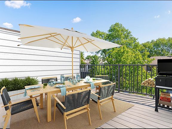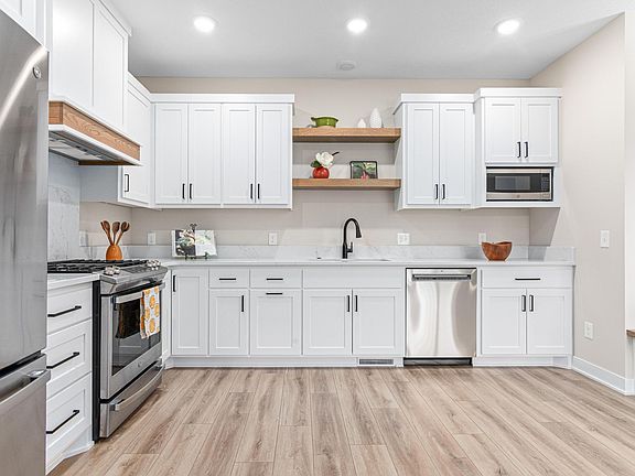 This beautifully designed new construction townhome offers easy access to shopping, healthcare, parks, and restaurants in a quiet six-unit community within the sought-after Mounds View School District. Crafted with quality and care, the home features luxury vinyl flooring, Pella windows, quartz countertops, and soft-close enamel cabinetry. Step from the insulated two-car garage into a welcoming mudroom with seating and storage, perfect for keeping gear for the great outdoors. The spacious kitchen includes a gas range, quartz counters, and a dining area with built-in seating for everyday meals or special occasions. The inviting living room was made for entertaining and the bright sunroom opens to a private deck. This level also features a comfortable primary suite with a walk-in closet, a 3/4 bath with double sinks and a tile shower, and nearby laundry. Downstairs, you'll find two additional bedrooms and a full bath, ideal for families or guests who value space and privacy. The finished lower level also includes a large recreation room and a flexible area perfect for a home office, workout space, or extra storage.