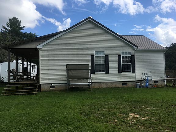 Property has no restrictions with lots of room. Has a roomy kitchen that's open to living and dining rooms on one side and open to a family room on other side. Master bedroom has large master bathroom with double vanity and jetted tub located on one end of home the other two bedrooms and bath located on other end. Has heatpump wood burning fireplace and water stove connected to the central air supply for cheaper heat during winter months. Has 30x40 garage with concrete floors in front 28 feet with electric and water 3 stalls located in rear with loft built above them. Additional 2 sheds off to side of garage one 14x40 that stored a fifth wheel camper other 14x30 connected to the 14x40. House is situated on 3.32 acres (open) with additional 2.98 acres (wooded) reflected in price. Metal roof was put on in August of 2016. Has large front deck and a covered 8x27 rear porch.
