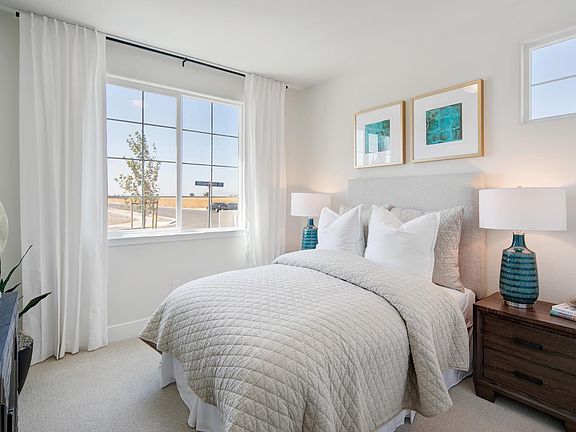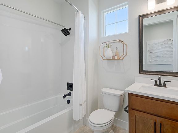 Welcome to Luminescence at Liberty - a vibrant 55+ community thoughtfully crafted for active adult living. This beautifully upgraded Bay Area Bungalow offers 1,569 square feet of modern comfort. Greet guests from your inviting covered front porch, leading into a home with 2 spacious bedrooms, 2 bathrooms, and an open concept living area ideal for both entertaining and relaxation. The gourmet kitchen is a true highlight, complete with quartz countertops, a designer herringbone tile backsplash, and durable hardwood laminate flooring. Enjoy premium LG stainless steel appliances, a sleek Delta kitchen faucet, and elegant Smoked Gray cabinets accented with brushed chrome designer selected hardware. Additional touches include a hallway linen cabinet with upper and lower storage, upgraded plush carpeting with premium padding in the bedrooms, and sophisticated cream tile in the bathrooms. A full laundry setup including washer, dryer, and pedestals are also included for your convenience. Every detail of this home has been carefully selected, showcasing high-end finishes and thoughtful upgrades throughout. Please note: Photos are of the model home and for representational purposes only. This home is currently under construction.