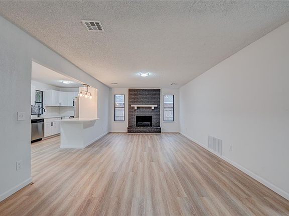 From the moment you arrive, the white brick exterior with striking black accents creates exceptional curb appeal. Step inside to an open-concept living space filled with natural light, modern flooring, and a bright, airy feel. The heart of the home is the brand-new kitchen—showcasing sleek white cabinetry, quartz countertops, subway tile backsplash, stainless steel appliances, and a spacious peninsula with bar seating and extra storage. The private master suite features a beautifully updated bath, while two additional bedrooms provide versatility for family, guests, or a home office. Every detail has been carefully selected, making this home both stylish and functional.