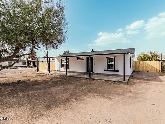 This charming 2 bed, 2 bath mobile home in Apache Junction features a new roof, sizeable front yard w/a mature shade tree and a welcoming front porch. Inside you will find a spacious open floor plan w/vaulted ceilings, elegant wood-look flooring, modern light fixtures, and trending palette throughout. the fabulous kitchen is equipped w/everything you'll need for preparing your favorite meals, shaker cabinetry, quartz counters, tile backsplash, stainless steel appliances, and an island w/a breakfast bar. The primary bedroom boasts a private ensuite w/dual vanities & designer touches. Lastly, the expansive backyard w/its covered patio and convenient storage shed, is a blank canvas just waiting for your personal touch! What's not to like? Hurry and act now!