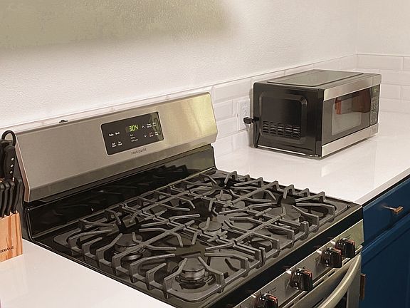 Hardwood floorsSecurity systemModern kitchenLarge fenced backyardGas stoveGranite countertopsBack deck