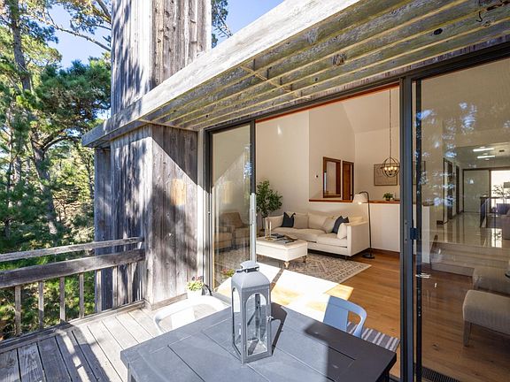 Beautifully updated 3-bedroom, two-bath end-unit townhome is conveniently perched above downtown Carmel. This serene retreat offers both space and privacy in an unbeatable location. Step inside to find a light-filled interior featuring gorgeous marble and hardwood floors. Nearly every window frames peaceful, verdant views, creating a constant connection to nature. The main level showcases a spacious primary suite with a large private deck off patio doors. The updated kitchen has stainless steel appliances and inspiring ocean and forest views provide the perfect backdrop for entertaining. The dining area open onto the dramatic living room with vaulted ceilings, an inviting fireplace, and a deck ideal for enjoying breathtaking sunsets. Downstairs, two additional bedrooms, a remodeled full bathroom, a laundry room, and a deck perfect for watching the sunsets over the Pacific.Additional highlights include two garages, and a huge storage room off the laundry area. This is coastal California living at its finest- quiet, and effortlessly close to everything that makes Carmel extraordinary.