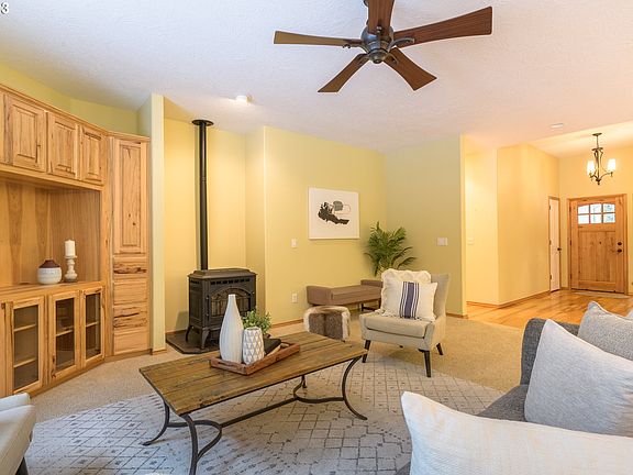 - Features: Builtin Features, Ceiling Fan, Eat Bar, High Ceilings, Wallto Wall Carpet, Wood Stove