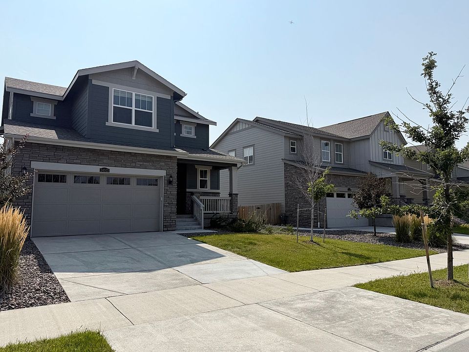 Beautiful Waterstone Community Welcomes you! Luxury New Home with Modern and Sleek New Finishes in the Heart of Aurora! Minutes to E470, DIA, I-70 and Southland Mall. Immaculate Lennar 2-Story Home completed in April 2023. This Lennar Pioneer Collection, Evans Model Features 3 Spacious bedrooms, Large Loft, a Generous Primary Bathroom, Full Hallway Bathroom and Main Level Half Bath! This Spacious Home Boasts a Versatile Main-Floor Layout with an Abundance of Flexible Living and Entertaining Space, including a Tech Space off of the Kitchen. Enjoy Sunrises from your East Facing Covered Front Porch. Soak in the Peace and Serenity of the Endless Open Space Greenbelt with Mature Trees and Gorgeous Landscape from your Front Porch. As you Enter the Home just Beyond the Foyer, the Combined Dining and Living Spaces are open from the Well-Appointed Chef's Kitchen, Featuring a Walk-in Pantry and Large Center Island with Counter Seating. The Kitchen is a Chef's Dream, Featuring Ample Cabinetry, Quartz Countertops and all New High-End Stainless Steel Appliances, including a Gas Stove! The Luxury Vinyl Plank Flooring throughout the Main Level adds Comfortable Elegance to the home. Additional Main-Floor Highlights include a Comfortable Great Room with Large Windows to Brighten the Space, a Main Level Powder Room and Mud Room off the Garage. Upstairs, you will find two gracious secondary bedrooms, with Full Hallway Bathroom, an Expansive Loft, and Conveniently located Large Upper Level Laundry Room with Brand New Washer and Dryer and Linen Closet. Relax in your Lavish Primary Suite, Showcasing a Private en Suite Bath with Separate Dual Vanities, Expansive Glass Shower and Roomy Walk-in Closet. Attached 2 Car Garage. Equipped with 240v outlet in garage for EV charging!