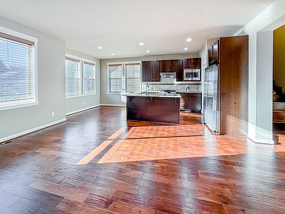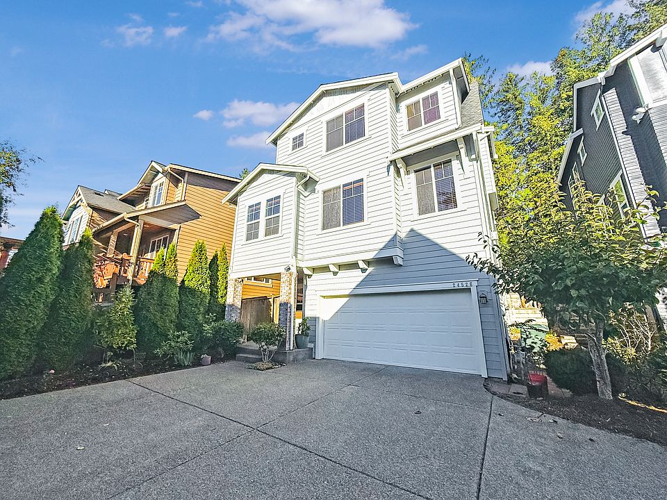 This light-filled home features an open layout with abundant windows that provide year-round natural light. On the lower level, a private bedroom and full bath offer an ideal space for guests or a home office. The main level showcases rich hardwood floors and a gourmet kitchen with stainless steel appliances, including a brand-new refrigerator, that seamlessly flows into the open living and dining areas. Upstairs, the primary suite includes a walk-in closet and an en-suite bath, along with two additional bedrooms. Just steps from trails, dining, shops, a cinema, and top-rated schools, with easy access to I-90 and nearby parks and shopping. Home has AC.