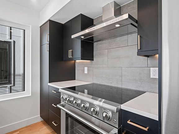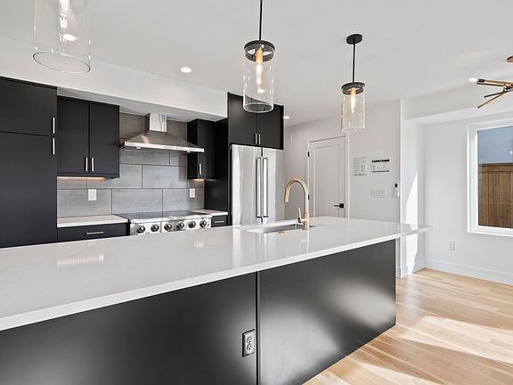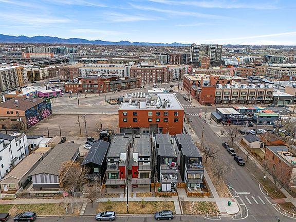 Modern design and urban convenience come together in this newly built duplex home in Denver's vibrant RiNo neighborhood. Spanning more than 2,100 square feet, the home features four bedrooms, a finished lower level, and three private outdoor patios that extend living beyond the interior. From a balcony ideal for morning coffee to an expansive rooftop deck perfect for evening gatherings, the outdoor spaces capture both fresh air and sweeping city and mountain views. Inside, the open-concept design showcases abundant natural light, clean lines, and high-end finishes throughout. The kitchen is equipped with premium stainless steel appliances, quartz countertops, and sleek modern fixtures, while a striking iron-railed staircase adds architectural interest and enhances flow between living areas. The primary suite is a true retreat with a spa-inspired bathroom, floor-to-ceiling tiled shower, and a private deck overlooking the skyline. The penthouse level elevates entertaining with a guest suite, wet bar, and rooftop deck framed by a pergola, where Denver's city lights and mountain backdrop create an unforgettable setting. The finished lower level offers versatile space for a media room, fitness area, or lounge, and a detached one-car garage provides both convenience and storage. Just steps from the RiNo Art District and minutes from downtown, this home delivers modern sophistication in one of Denver's most dynamic neighborhoods.