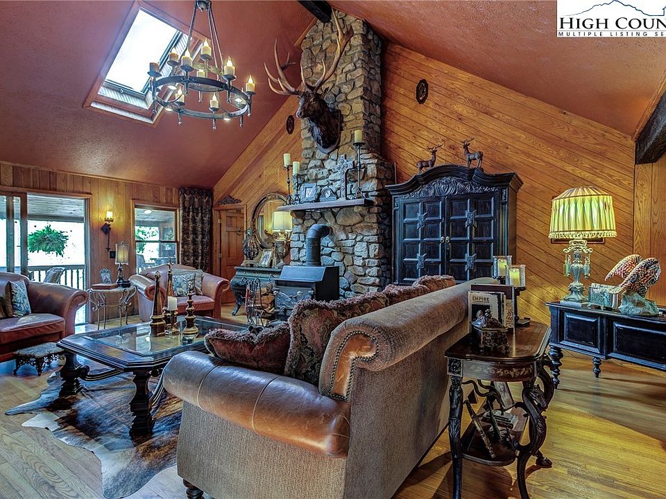 Privacy abounds on this very unique mountain property located just minutes from Blowing Rock and Boone! Sellers have made major updates throughout and designed this spectacular 1981 cottage into a "King's Hunting Lodge" with thoughtful renovations and distinctive additions and fixtures (please see list of seller updates in MLS attachments). Main level includes gorgeous living room with cathedral ceiling, classic stone fireplace and Glacier Bay vintage woodstove, and hardwoods ... renovated chef's kitchen is spectacular and spills into both a breakfast nook and a dining room/sunroom ... and primary bedroom en-suite with adjacent parlor/stone fireplace is cozy and romantic. Upstairs loft includes two bedrooms with "Jack-n-Jill" bath, and lower level boasts additional living/sleeping areas and secondary kitchen and laundry, which has been used as a "mother-in-law" suite with separate entrance. On the exterior, enjoy multiple porches and patios, firepit, a "hammock sanctuary" amidst the rhododendron, vegetable and flower gardens, and many walking trails. The nearly 2-acre lot even boasts a creek/stream and sellers claim well water is "best they've ever tasted!" Home is a must-see! Only 5 minutes from Boone and Trout Lake/Cone Park trails ... 10 minutes to downtown Blowing Rock! All fixtures, custom chandeliers, and draperies will remain; all other furnishings are negotiable either together or separately from offer.