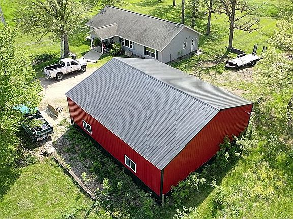 Beautiful property for hunting or fully fenced for cows. Big insulated and heated garage. and a out building with concrete floors. New kinetico system new well 2 new owned propane tanks 160 acres 35 of hard oaks and maples. Has heated floors in house furnace and heat pump for heating. Central air.