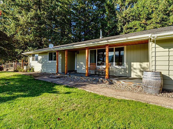 Enjoy peaceful country living and beautiful views from this tastefully updated property in Veneta. The remodeled kitchen features stainless steel appliances and modern finishes, opening to bright, comfortable living spaces with luxury vinyl plank flooring throughout. A wood-burning fireplace insert adds cozy charm, while the ductless heat pump provides efficient heating and cooling year-round. Step outside to take in the wide-open pasture, a 2-bay RV shed/shop, and a pergola-covered patio—perfect for relaxing or entertaining. Complete with power and water, the chicken coop is perfect for fresh eggs or backyard farming. Enjoy the versatility of a nearly 500 sqft ADU, complete with a kitchenette and full bathroom with a walk-in shower. Ideal for multigenerational living, a home office, studio, or rental opportunity. With low taxes, great views, and room to roam, this property offers the perfect blend of comfort, function, and country charm.