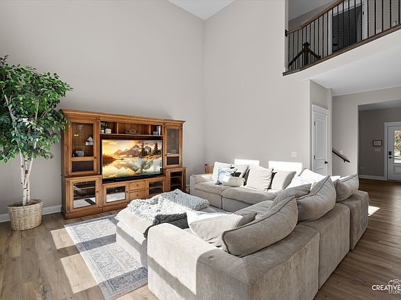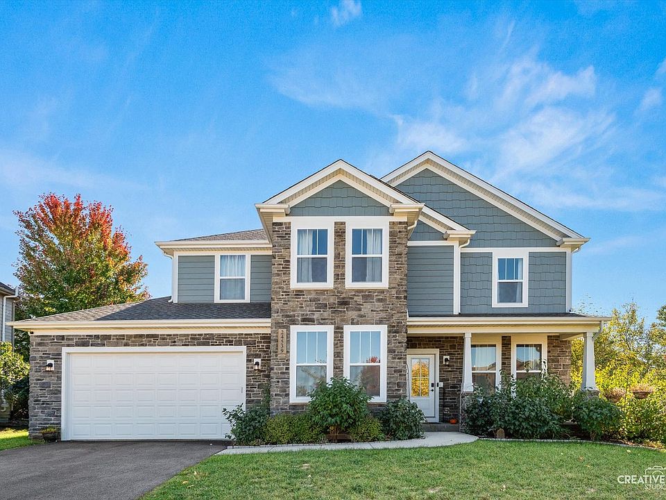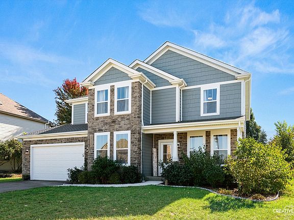 Better than new! Spacious 4 bedroom, 2.1 bath two story home with 9 ft basement, plumbed for future bath and 3 car tandem garage boasts of its many upgrades. The foyer is open to the dining room and offers multiple use options with the adjoining flex/study, two story great room that is open to the eat-in kitchen with white cabinets, large island with breakfast bar, stainless steel appliances, upgraded vent hood, double oven and pantry, mudroom has built in coat rack/ bench and connects to the garage, convenient 2nd floor laundry room with an open railing to the two story great room, Primary suite has tray ceiling, spacious closet, double bowl sinks and large shower in the luxury bathroom. Additional bedrooms are all generously sized. Large back yard with patio. Homes built with smart home technology. Must see, neutral decor, Move-in condition!