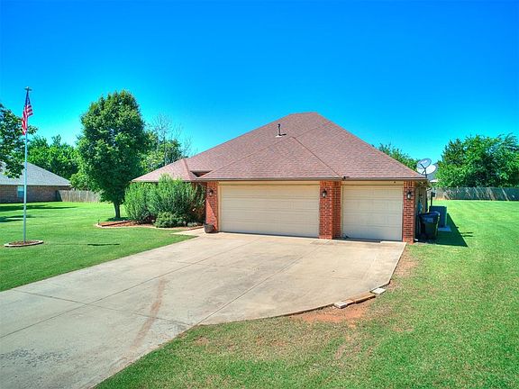 This 3-bedroom, 2-bath, with a study (optional 4th bedroom) home sits on a spacious corner lot that is just under an acre and big enough for a shop. Located in the Newcastle school district, with no active HOA, it offers peaceful living with quick access to shopping, dining, Highway 4, I-44, and just a short drive to Highway 9. Inside, the home features beautiful hardwood flooring throughout the living areas and tile in the kitchen. The bedrooms and study are carpeted for comfort. Recent updates and upgrades include a new roof (2021), HVAC system, carpet, countertops, stove, microwave, and backsplash—all replaced within the last 3 years. Additional features include a 3-car garage, a 10x16 storage shed, and a 6-person below-ground storm shelter for added peace of mind. For added security, the home is equipped with 4 self-monitored security cameras and a home security system that is not currently being monitored. Both will stay with the home, as well as the flagpole in the front yard. The home is total electric other than the gas kitchen stove and gas fireplace. Built in 2006, and has only had one owner, this home combines quality construction with modern updates, offering both comfort and convenience in a quiet yet accessible location.
