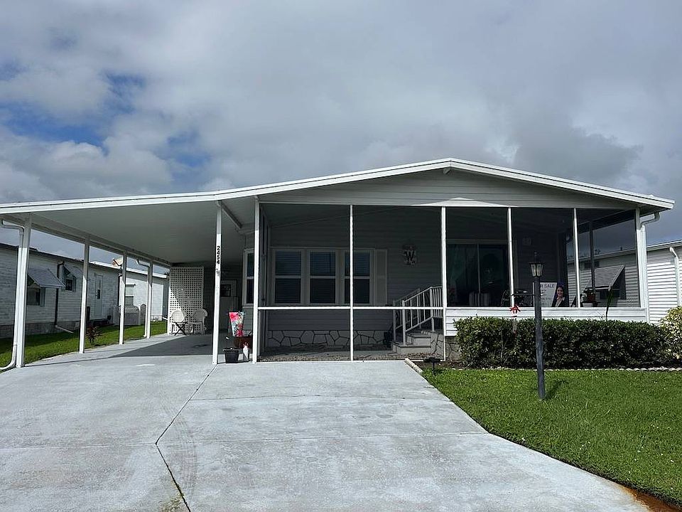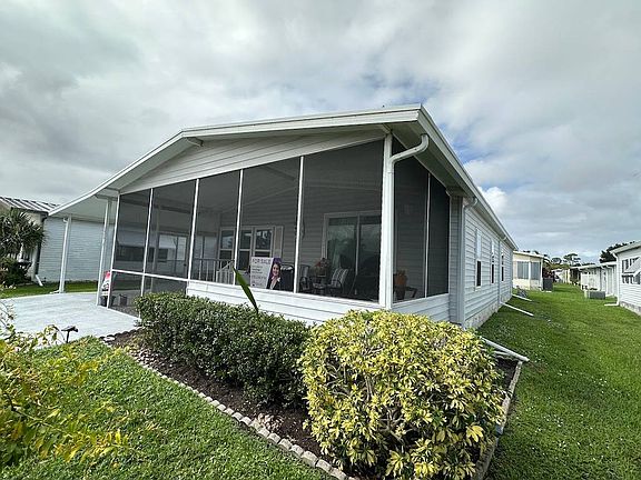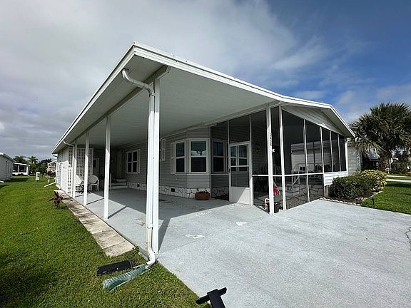 STEP INTO THIS SPACIOUS AND WELL-MAINTAINED 2-BEDROOM, 2-BATHROOM MOBILE HOME! This home has been thoughtfully updated and is move-in ready. Offering over 1,200 square feet of living space, the home is filled with natural light, highlighted by gorgeous bay windows across the front. Recent upgrades in 2024 include impact windows, a new roof, central AC unit, kitchen sink, and a modern primary shower, giving you peace of mind for years to come! The open layout provides both comfort and functionality, while the huge screened patio is perfect for relaxing or entertaining outdoors. With a double parking driveway, convenience and space are built right in, making this home a true gem. Don't miss this great opportunity! **Home is being sold as unfurnished, as is.** Quail Run is a 55+ community located in Melbourne, FL. Within 10 miles of the East coast, less than an hour from SpaceX, and nearby restaurants, shopping and entertainment. This community allows a maximum of two pets. 80/20 rule where the first resident must be 55+ and the second resident may be 45+. Lot rent is $640 per month. Measurements are L x W KITCHEN: 16 x 13 Ceramic Tile Flooring Refrigerator Range Dishwasher Microwave Eat-In Kitchen Bay Windows LIVING ROOM: 20 x 17 Vinyl Plank Flooring Ceiling Fan with Light DINING ROOM: 11 x 10 Vinyl Plank Flooring Built-in Hutch MAIN BATH: 13 x 7 Ceramic Tile Flooring Single Sink PRIMARY BEDROOM: 20 x 13 Carpet Flooring Ceiling Fan with Light PRIMARY BATHROOM: 8 x 5 Ceramic Tile Flooring Single Sink GUEST BEDROOM: 16 x 12 Carpet Flooring Ceiling Fan with Light SCREEN ROOM: 23 x 10 Concrete Flooring LAUNDRY: 8 x 6 Washer & Dryer Stays Ceramic Tile Flooring Cabinets Located Off: Hallway SHED: 8 x 6 Concrete Flooring AC Unit COMMUNITY: Clubhouse with Community Room Swimming Pool Dog Run The above information and the condition of this property is not guaranteed. Listing description is based on information provided by the Seller. All measurements are approximate. It is the Buyer's responsibility to confirm condition/age and all measurements. Current fees, current lot rent, rules and regulations, or pass-on costs associated with this home, and particular park should be confirmed, by the Buyer, with the community office. This mobile home is sold in "As Is" condition with no warranties or guarantees.