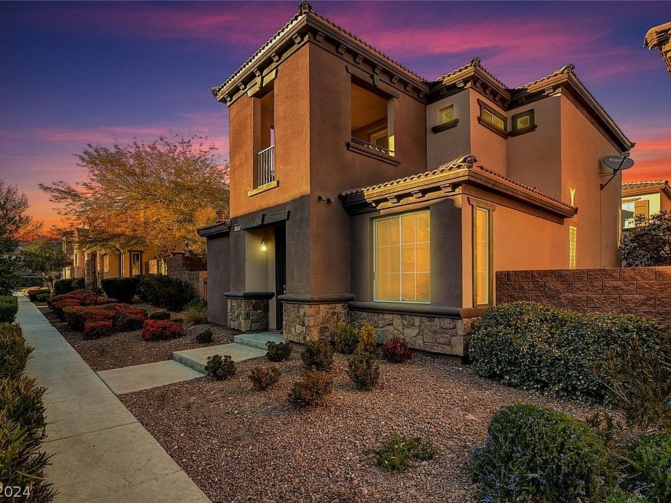 Introducing beautiful and bright 4-bedroom home nested within highly sought guard-gated Traccia community. This bright and welcoming residence built by Toll Brothers offers an ideal blend of comfort as well as maintained and well-loved home. With one bedroom and one full bathroom downstairs, the home offers a highly functional layout. Open floorplan, stainless steel appliances, granite kitchen countertops, french doors leading to the backyard. Upstairs balcony off primary suite, two walk-in closets, great ceiling height. The community offers plenty of amenities with two pools, outdoor area, walking paths, tennis courts, gym, game and event rooms. Minutes away from Downtown Summerlin shopping and restaurants, Red Rock Casino, Costco.
